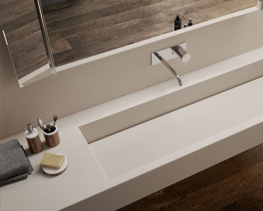 - KHÔNG CÓ VẾT NỐI: HI-MACS cho phép tạo ra các sản phẩm có hình dáng độc đáo liền mạch với kích thước lớn và bề mặt nhẵn bóng không có khớp nối.