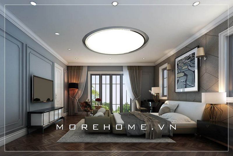 Thiết kế nội thất phòng ngủ Master cho biệt thự đầy sang trọng và tinh tế với phong cách tân cổ điển