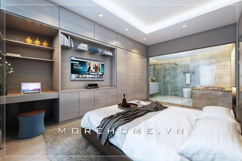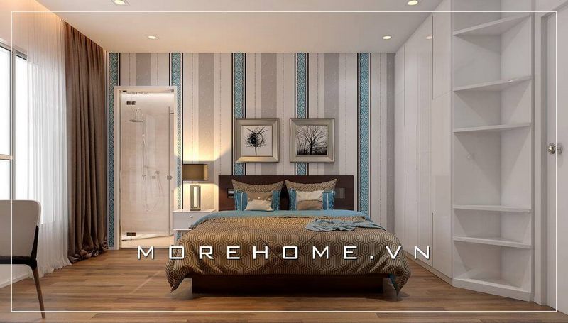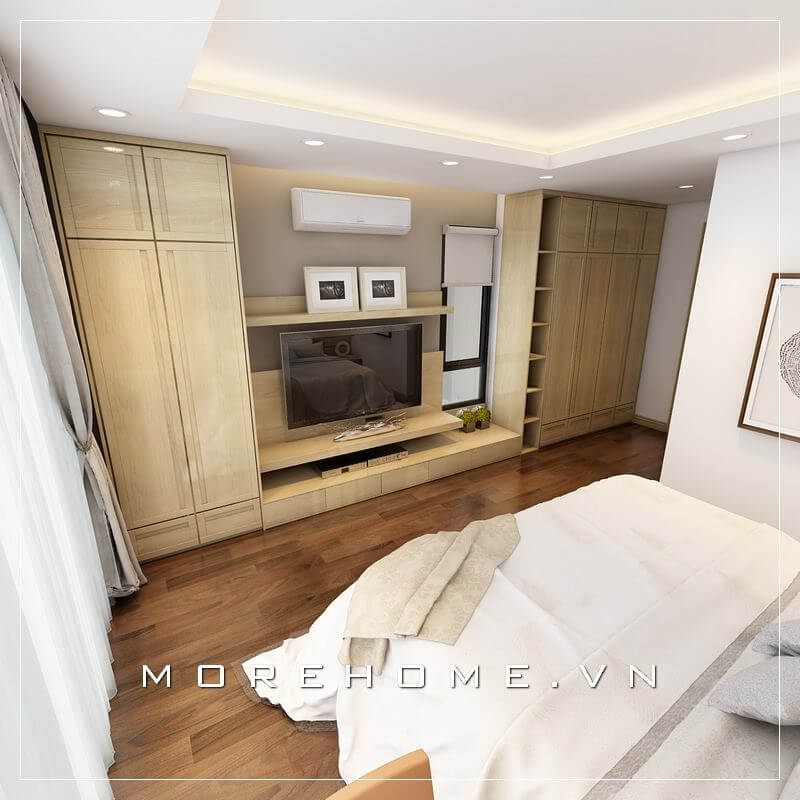 Mẫu tủ áo cánh mở hiện đại được thiết kế âm tường kịch trần giúp gia tăng không gian trong phòng ngủ, làm cho nó trở nên rộng rãi hơn.