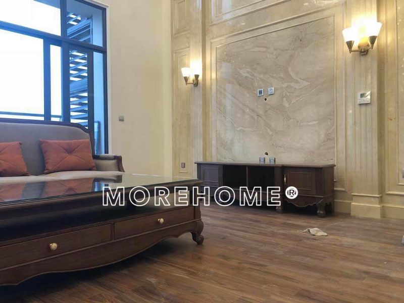Mẫu bàn trà độc đáo với mặt đá tự nhiên kết hợp chân sắt cao cấp được sử dụng trong phòng khách biệt thự để tạo điểm nhấn cho căn phòng.
