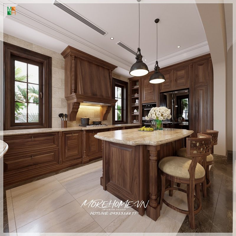 Thiết kế phòng bếp sang trọng cho chung cư, nhà phố phong cách tân cổ điển